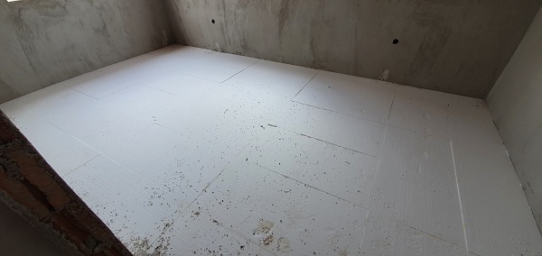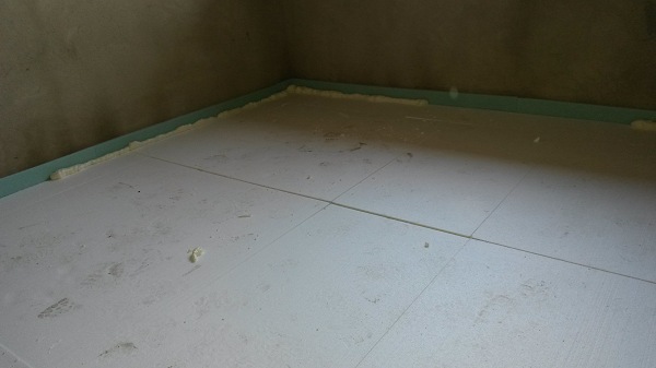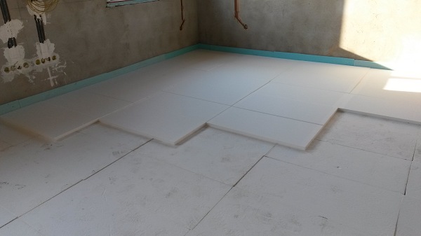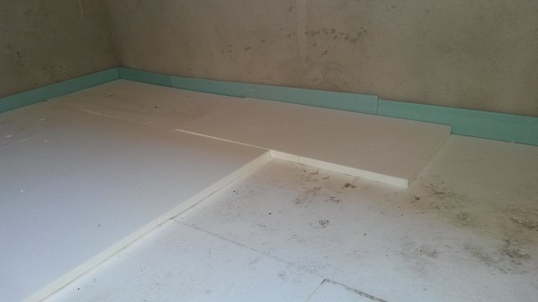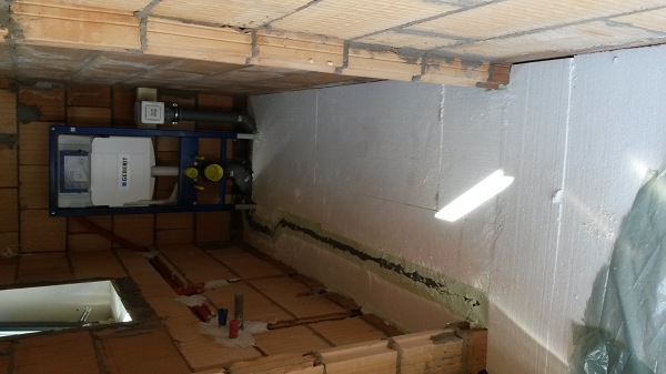 Az épület legnagyobb kihívása a fürdőszobai aljzat hőszigetelése. Természetesen egyeztetni kell a víz-csatorna kiépítését és villanyszerelést végző szakemberekkel is, hogy az aljzaton vezetett csőrendszerek egymás mellett, lehetőleg a helyiség falával párhuzamosan és kereszteződések kerülésével kerüljün kialakításra.