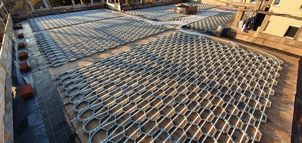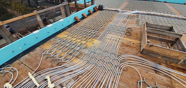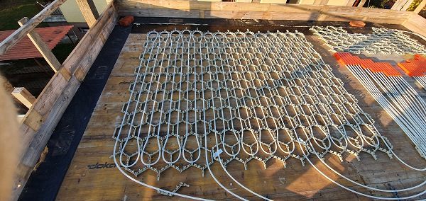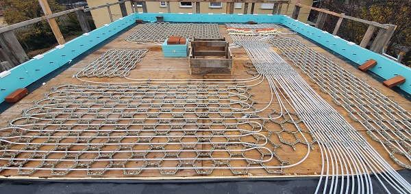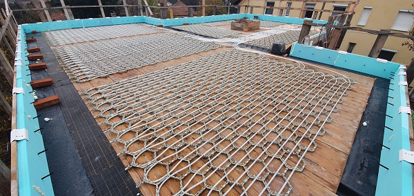Fűtési üzemnél a padlófűtéssel együtt üzemeltetjük a mennyezeti rendszert. Az emberi komfortérzet miatt javasoljuk a padlófűtéssel történő kombinációt.