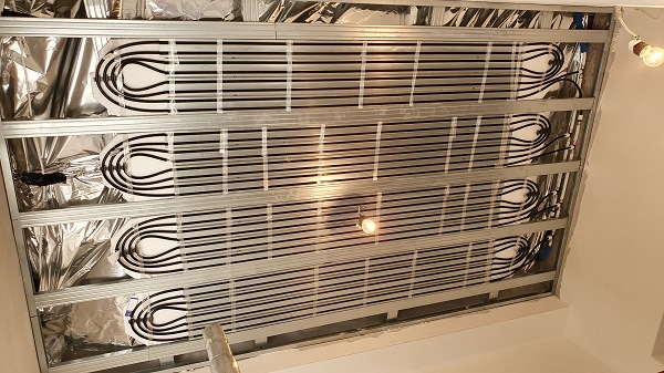 Az álmennyezeti rendszer hűtésre/fűtésre egyaránt alkalmazható. Nagy előnye, hogy előre gyártott panelekből gyorsan összeépíthető. A minimális rétegvastagság 6-7cm, ennyit vesz el a belmagasságból. Ugyanakkor fa födémre is alkalmazható. A kiépített panelek ezután gipszkartonnal burkolhatóak.