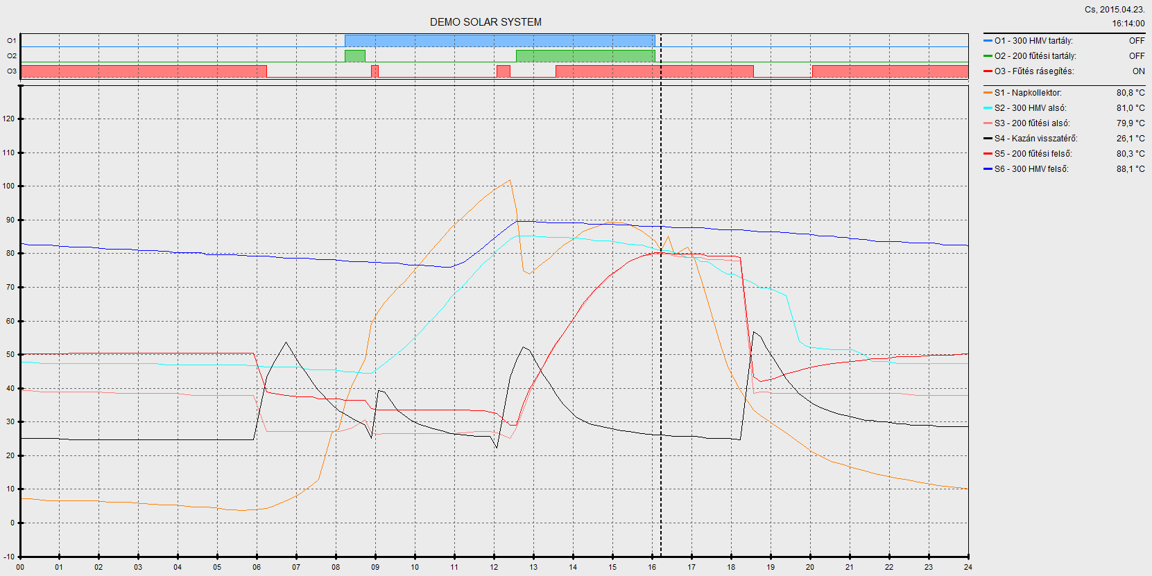Diszpécser feladatokhoz a gépészeti rendszerek kapcsolási rajzai PC-n megjeleníthetőek, a mért értékek a kapcsolási rajzon elhelyezhetőek. Az értékek alacsony, vagy magas kilengései email riasztási üzeneteket is kiválthatnak akár közvetlenül a szervíznek vagy intézkedő szervnek.